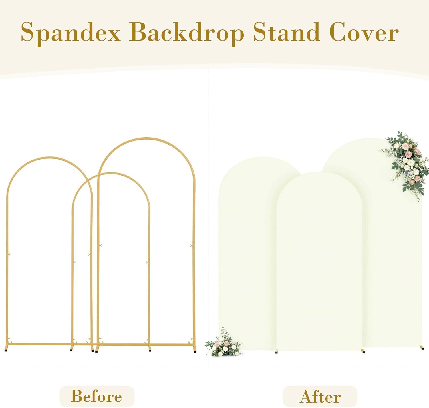 Créez une toile de fond élégante et intemporelle avec nos 3 housses d'arche ivoire, conçues pour se draper magnifiquement sur les cadres d'arche standard et les arches de ballons. Fabriquées à partir de tissu spandex extensible de qualité supérieure, ces housses offrent une finition lisse et sans plis qui rehausse instantanément le décor de votre événement. La douce teinte ivoire ajoute de la chaleur et de la sophistication, ce qui les rend parfaites pour les mariages, les fêtes prénatales, les douches nuptiales, les anniversaires, les fiançailles et les toiles de fond photo professionnelles. Que vous soyez un décorateur DIY, un organisateur d'événements ou un photographe, cet ensemble polyvalent vous aide à obtenir un look épuré, chic et soigné avec un minimum d'effort.