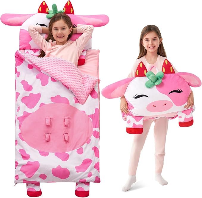 Whether it's for daycare, school, sleepovers, or traveling with family, this Pink Strawberry Cow Nap Mat brings comfort, convenience, and a touch of cuteness to every nap.
