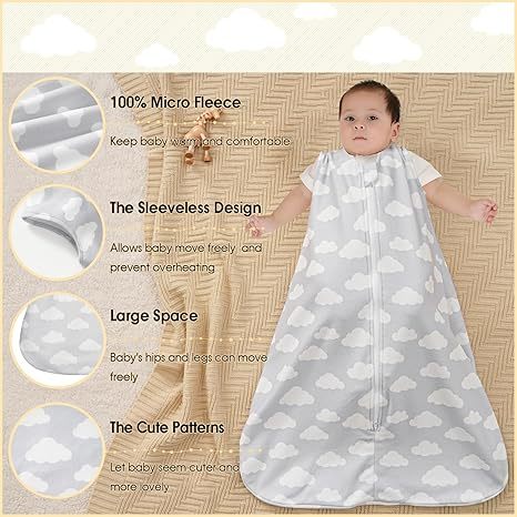 Give your baby the gift of cozy, safe, and restful sleep with our 2 Pack Micro-Fleece Baby Sleep Sack. Designed with ultra-soft micro-fleece fabric and an adorable cloud pattern, this wearable blanket keeps your little one warm and comfortable all night long—without the need for loose blankets. The convenient 2-way zipper makes nighttime diaper changes quick and easy, helping both babies and parents sleep better.