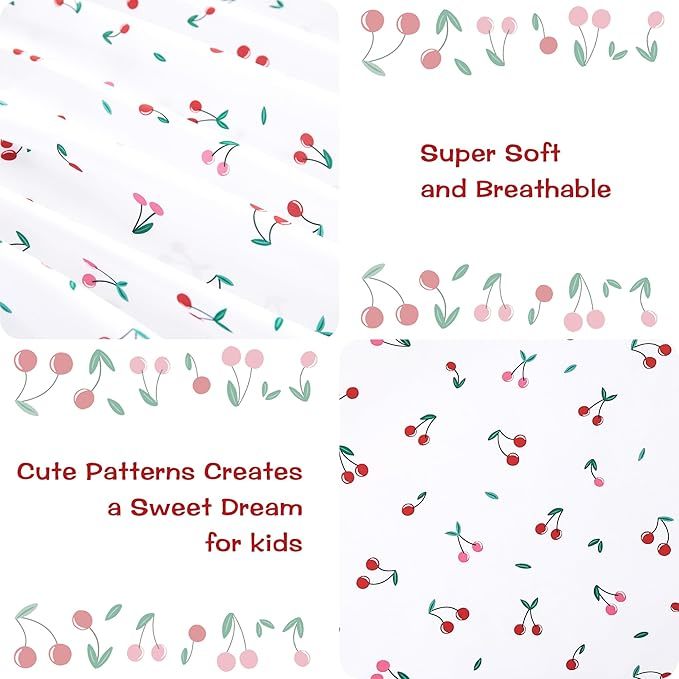 The lightweight, breathable fabric helps create a comfortable sleep environment by promoting airflow and maintaining an ideal sleeping temperature throughout the night. Cute cherry prints bring a fresh, cheerful look to any kids’ room—ideal for toddlers, children, and tweens who love fun and colorful bedding.