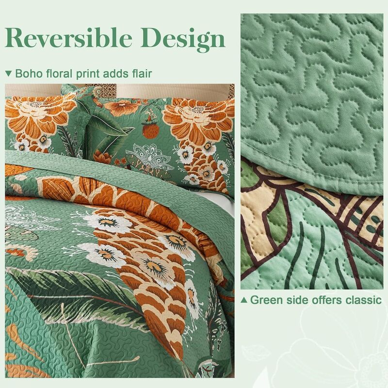 Bring effortless style and year-round comfort to your bedroom with this Lightweight Microfiber Bedspread & Coverlet Set, designed in a charming farmhouse botanical pattern. Crafted for modern homes that value both comfort and aesthetics, this quilt set blends softness, durability, and timeless design.