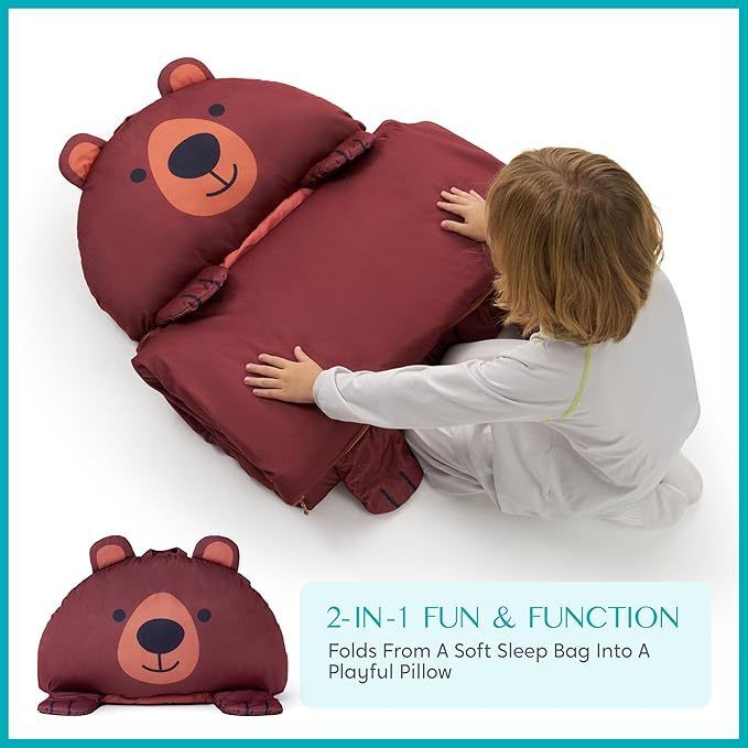 Give your child a warm, cozy place to rest with our Brown Bear Toddler Nap Mat, designed for kids ages 3 and up. This all-in-one nap mat features a padded sleep surface, a soft built-in pillow, and an attached blanket—making it perfect for daycare, preschool, travel, or relaxing at home.