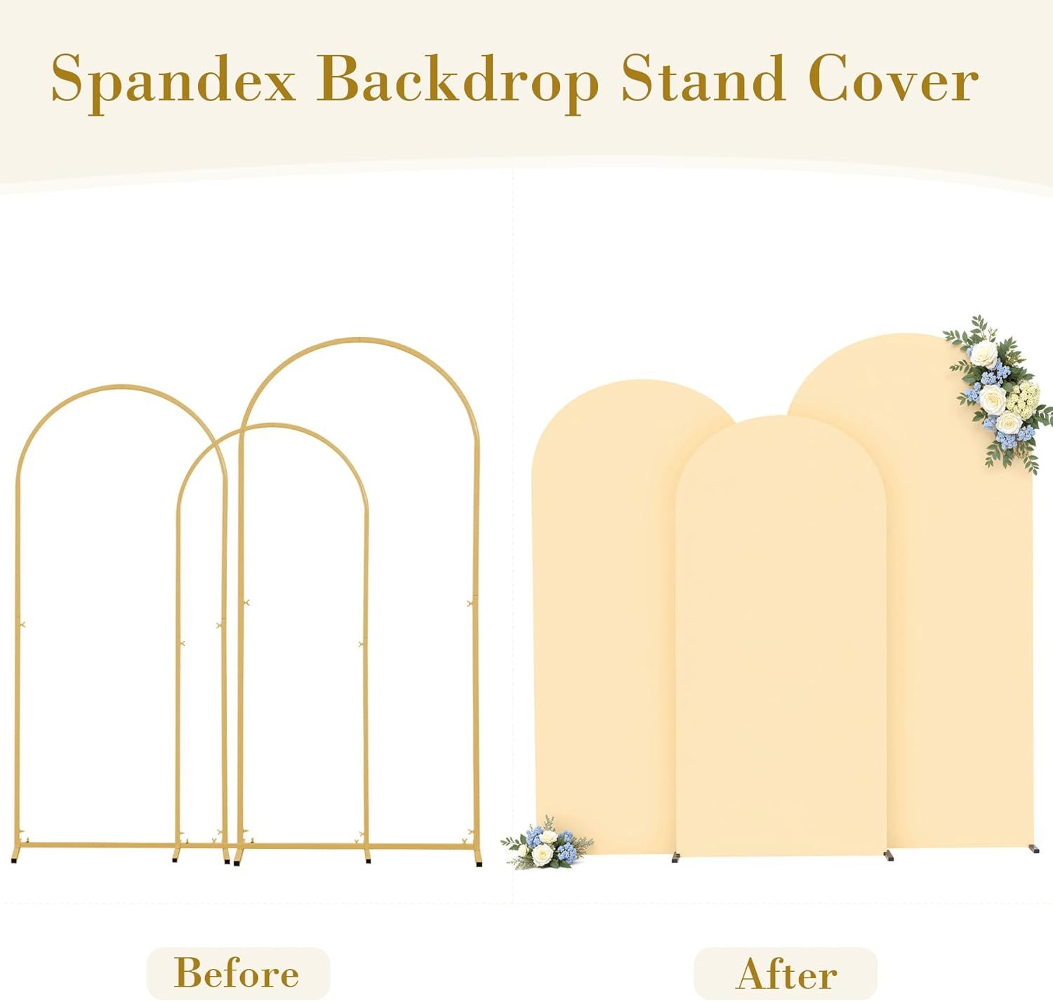 Transform any celebration into an elegant, picture-perfect event with our Champagne Arch Covers 3-Piece Set. Designed to fit standard arch frames, these premium spandex backdrop covers create a smooth, wrinkle-free, and luxurious look for weddings, baby showers, birthday parties, bridal showers, engagement parties, and photo booths. The soft champagne tone adds warmth, sophistication, and timeless charm to your décor—perfect for both indoor and outdoor events.