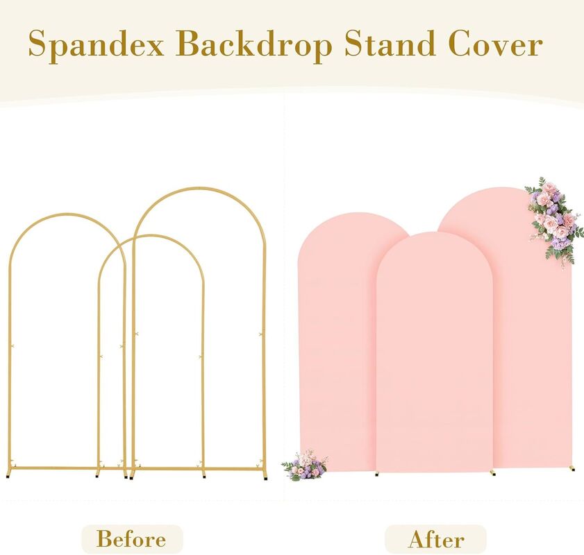 Create an elegant and romantic atmosphere with our 3 Piece Dusty Rose Arch Covers. Made from high-quality stretch spandex fabric, these arch backdrop covers are designed to fit most standard wedding arches seamlessly, giving your event décor a smooth, polished, and luxurious look.