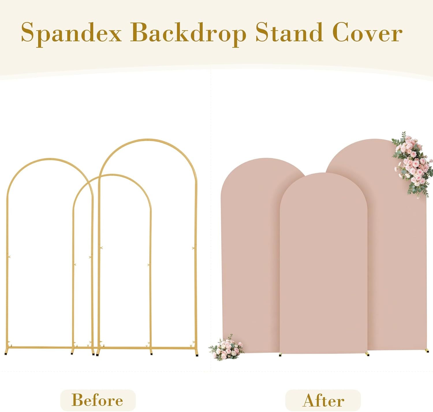 Create a soft, modern, and elegant event backdrop with our 3 Piece Nude Arch Covers. Designed with premium stretch spandex fabric, these arch covers fit seamlessly over standard arch frames to deliver a smooth, wrinkle-free finish. The neutral nude tone blends beautifully with any color palette, making it the perfect choice for weddings, baby showers, birthday parties, bridal showers, and professional photo setups. Instantly elevate your décor with a minimalist yet luxurious look.