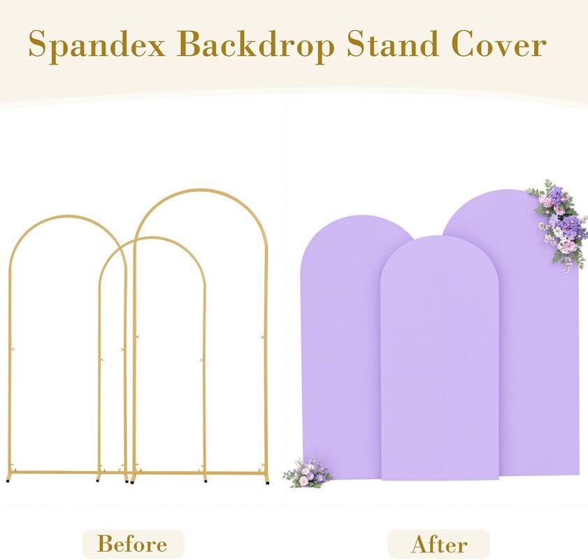 Add a touch of charm and elegance to your event décor with our Purple Arch Covers 3 Piece Set. Designed to fit most standard arch frames, these stretch spandex backdrop covers instantly turn ordinary balloon arches or metal stands into a beautiful, eye-catching focal point. The rich purple color creates a stylish and romantic atmosphere, making it perfect for weddings, baby showers, birthday parties, bridal showers, anniversaries, and photo booth setups. Whether you're planning a professional event or a DIY celebration, these arch covers help you achieve a polished look effortlessly.