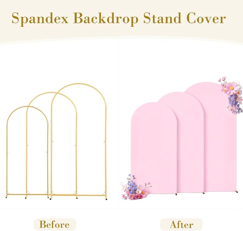 Add a soft, romantic touch to your event décor with our Pale Pink Arch Covers 3 Piece Set. Designed to fit most standard arch frames, these stretch spandex covers instantly transform simple metal or balloon arches into an elegant, professional backdrop. The gentle pale pink color creates a warm and dreamy atmosphere, making it perfect for weddings, baby showers, birthday parties, bridal showers, gender reveals, and photo booth setups. Whether you're planning a luxury event or a DIY celebration, this backdrop cover set brings effortless beauty to any space.