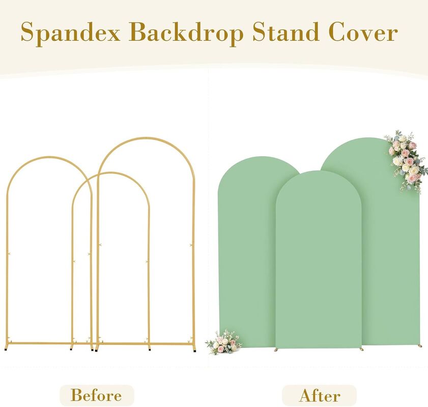 Create a stunning and elegant backdrop for your special events with our Sage Green Wedding Arch Backdrop Covers. This 3-piece round top cover set is designed to perfectly fit most standard arch stands, transforming any space into a romantic and professional-looking setting. Ideal for weddings, birthday parties, baby showers, bridal showers, anniversaries, and other celebrations.